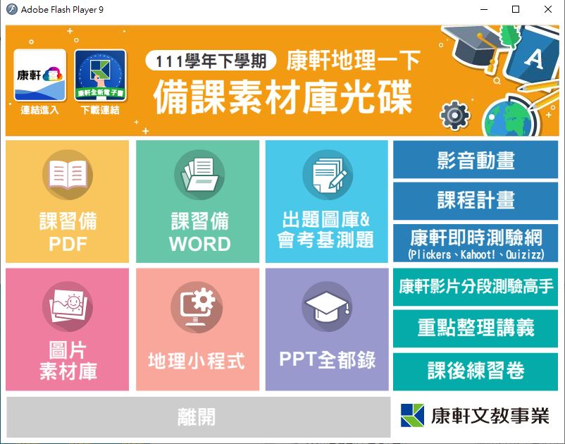 111學年下學期 國中 康軒版 地理備課資料庫 1年級(含課本、卷類資源、備課用書、習作含解答、教學輔助資源)教學光碟