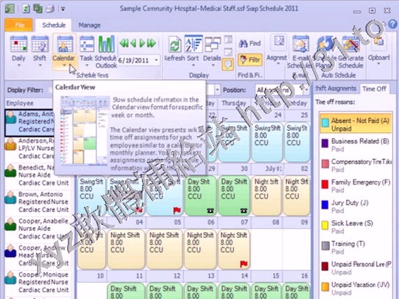 Snap Schedule 2011員工排班表軟體可以更多的控制和更靈活地安