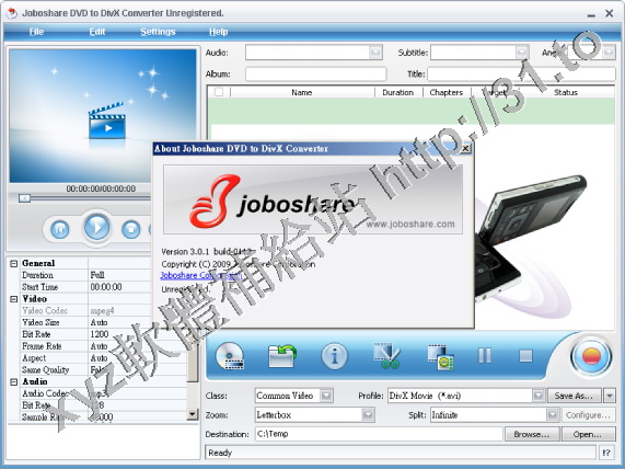 Joboshare DVD to DivX Converter v3.0.1.0112 英文正式版(音視頻轉換軟體)